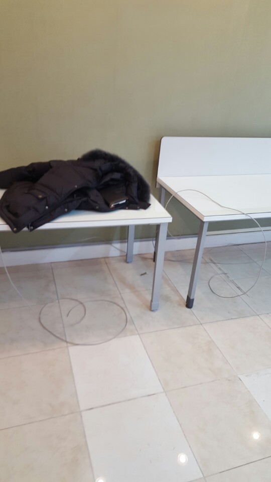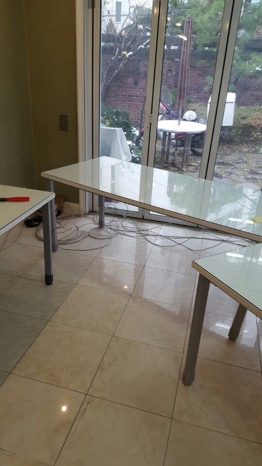 사무실 바닥에 먼저 랜선을 구축하였습니다.