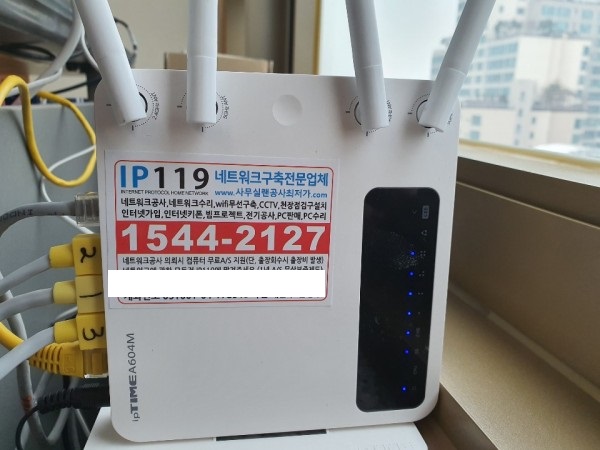 랜선을 공유기에 꽂아 신호 확인을 하고 사무실랜공사작업을 마무리하였습니다