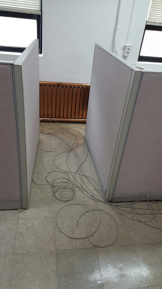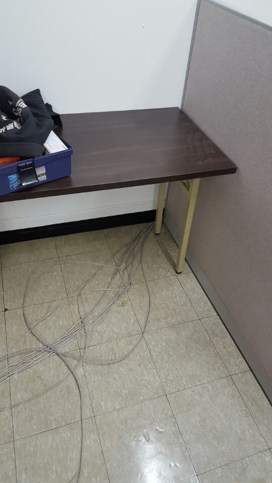 몰딩처리후 랜선을 각 책상위에 택작업하여