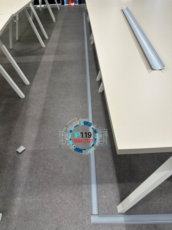 현장 방문 후 회의실 책상 배치와 장비 위치를 고려해, 가장 짧고 효율적인 바닥 동선으로 랜선 포설 경로를 설계했습니다. 바닥을 따라 포설된 케이블은 통행 시 걸림이 없도록 가장자리를 따라 배치하고, 외부 노출이 생기는 구간은 내구성이 뛰어난 몰딩 자재로 단단히 마감하였습니다.